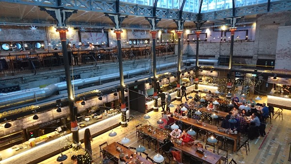 Grade II-listed Victorian market hall transformed into a stunning food and drink destination with a central bar serving craft beers and cocktails from 12pm daily. The soaring ceilings, original ironwork, and communal seating create a buzzing atmosphere perfect for long afternoon sessions. Multiple food vendors mean your group can all eat different cuisines while sharing drinks. The architectural wow factor makes daytime drinking here feel like an occasion rather than an accident. Gets busy weekend afternoons but the scale means you can always find a corner. Manchester's most Instagram-worthy food hall delivers on substance too.