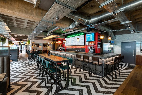 Manchester's massive indoor-outdoor drinking playground with happy hour running until 7pm daily. This former rail depot hosts multiple bars, street food vendors, and a huge outdoor terrace that's pure daytime drinking paradise come summer. Rotating DJ sets from afternoon onwards, giant games, and a festival vibe that makes day drinking feel less "problem" and more "plan." The sheer scale means you can always find a spot, whether you want sun or shade, quiet corner or dance floor energy. Perfect for groups who can't commit to one vibe.